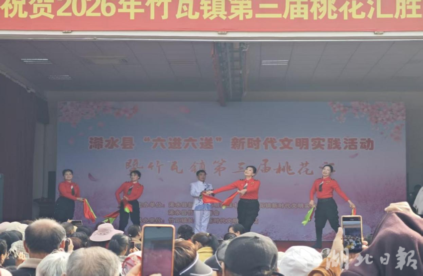 三月春风暖,桃花别样红。在这万物复苏的美好时节,浠水县竹瓦镇第三届“桃花汇”如约而至,与“六进六送”新时代文明实践活动携手,为这片桃花盛开的土地增添了别样的文化韵味与文明新风。